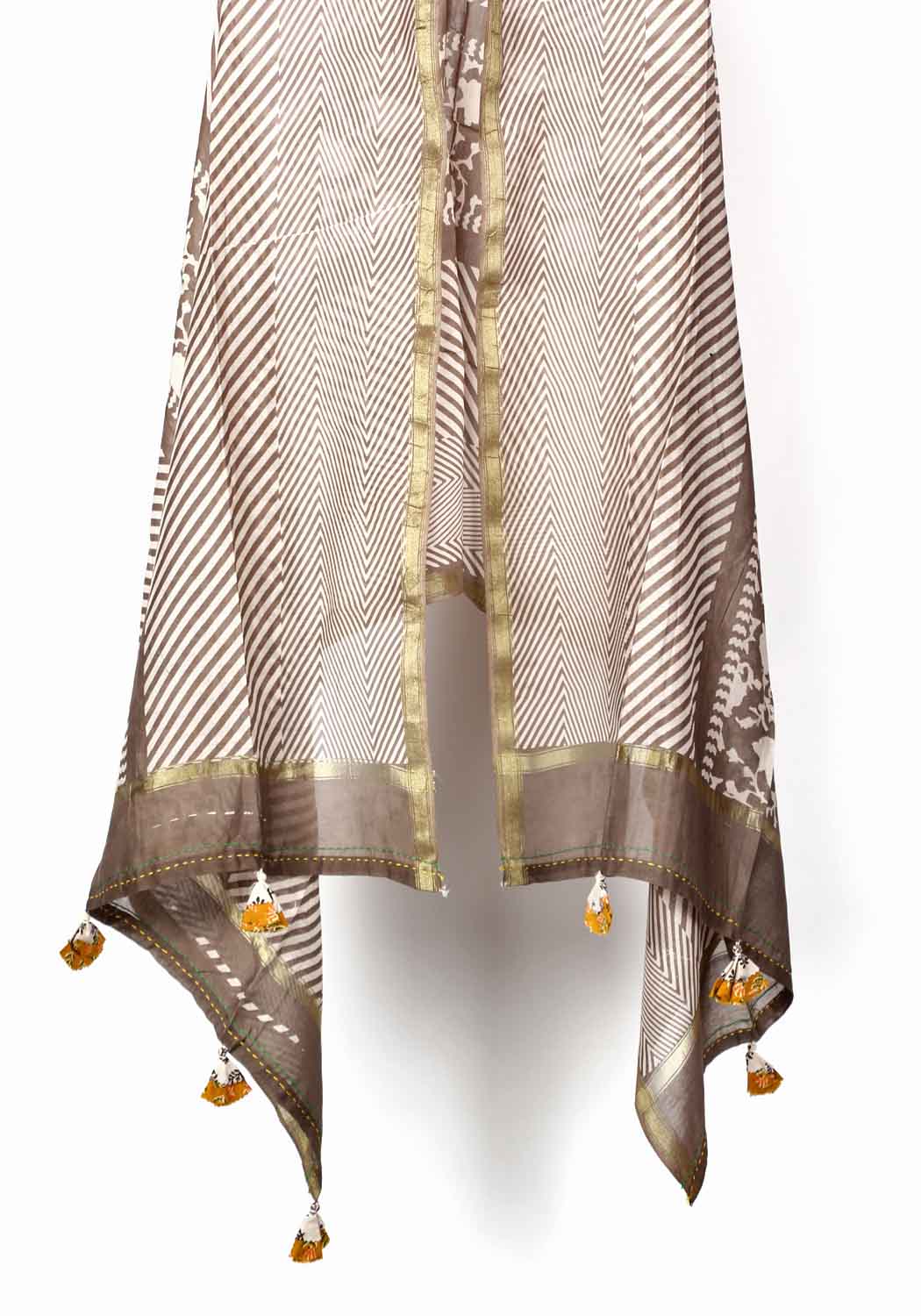 Elegant Kashish Dupatta from the house of Ambiya is apt to bestow your traditional Kurti an exquisite look. The usage of tassels and simple sew stitch which has been done with the assistance of underprivilege women. adds more charm to this gorgeous and attractive dupatta.