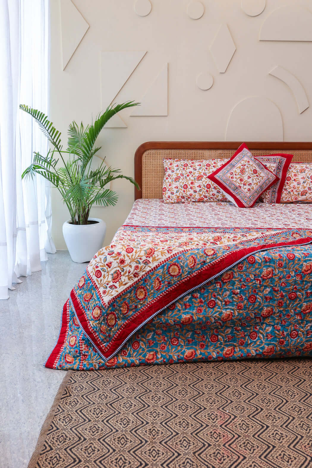 Order Contains: One Bedsheet, One Comforter, Two Pillow Covers & Two Cushion Covers