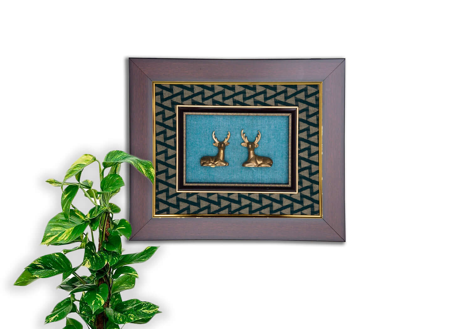 Order Contains: 1 Unit Of Brass and wood pair of Deer wall hanging frame