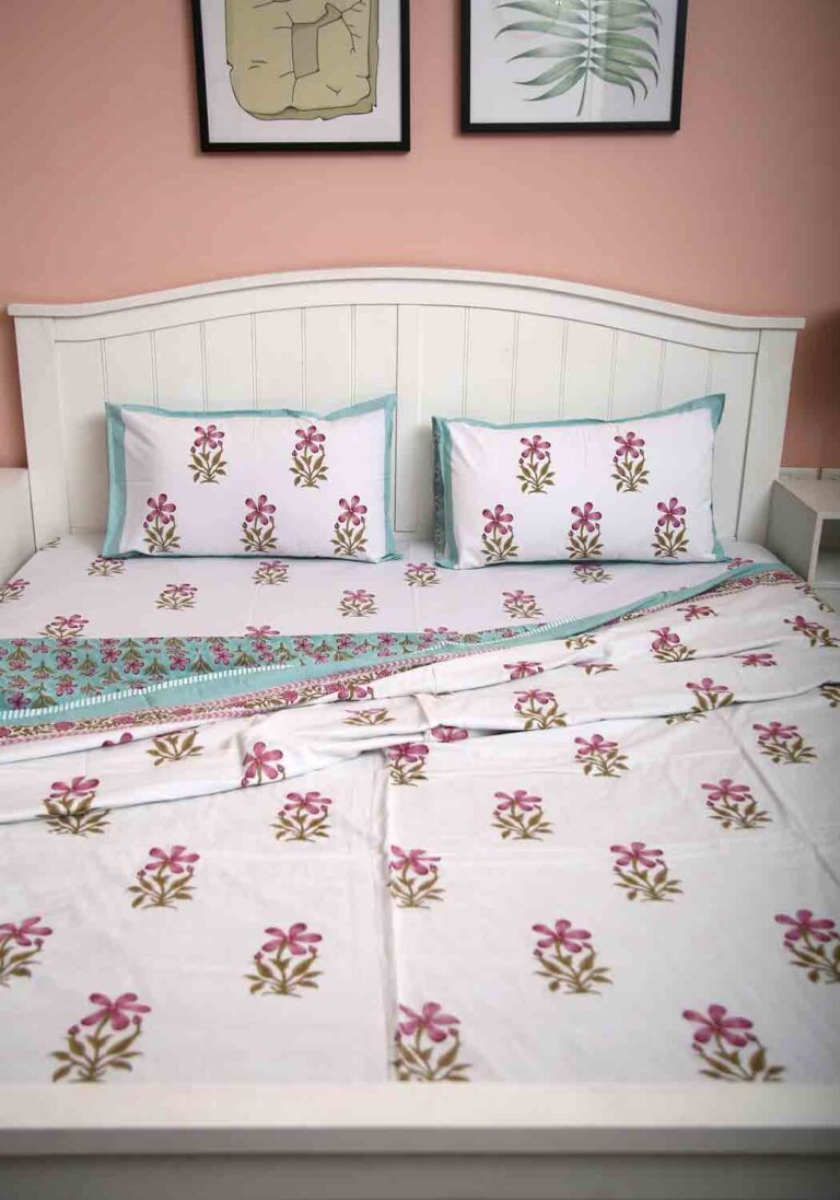 Order Contains: One Bedsheet & Two Pillow Covers, One Cushion Cover, and One Dohar