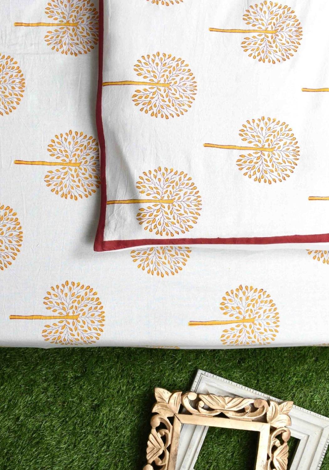 Golden Woods Premium Cotton Hand Block Print Bedsheet