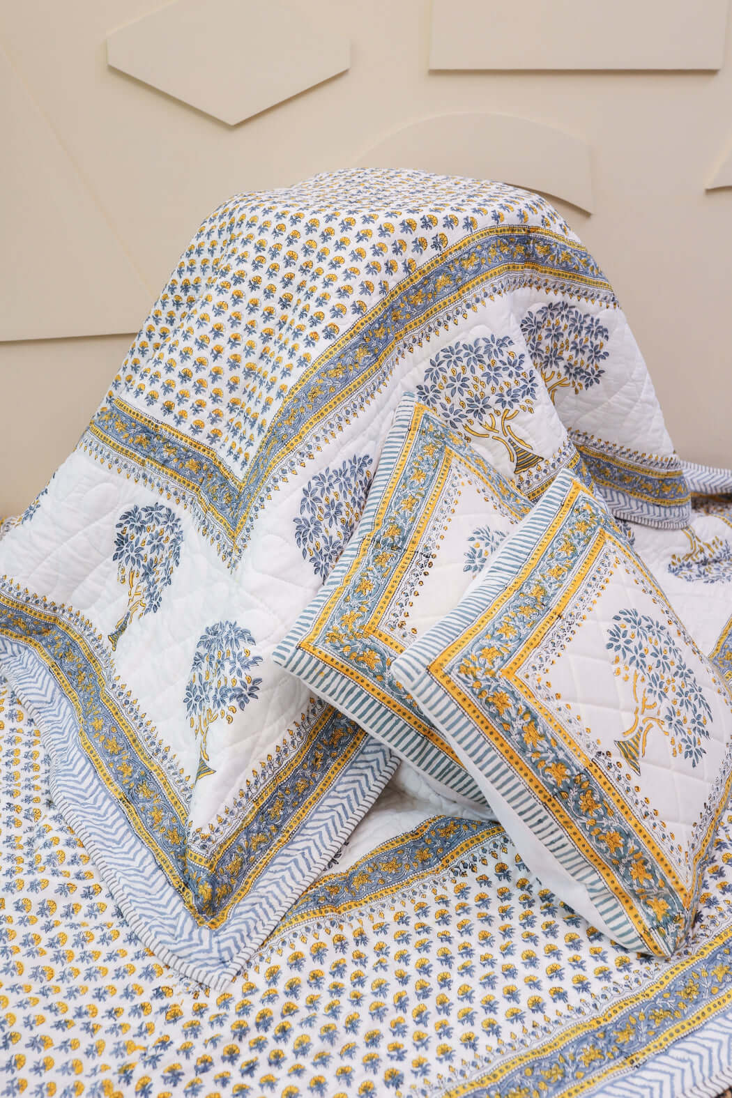 Embrace timeless elegance with the Heritage Blooms Collection. Each piece in this comforter features intricate hand block prints of classic floral motifs, evoking a sense of vintage charm. The soft, breathable cotton ensures comfort while adding a touch of sophistication to your bedroom decor.