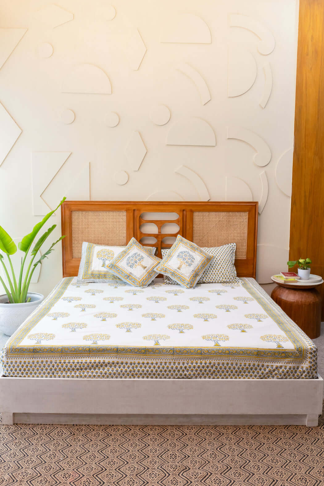 Embrace timeless elegance with the Heritage Blooms Collection. Each piece in this Bedsheet features intricate hand block prints of classic floral motifs, evoking a sense of vintage charm. The soft, breathable cotton ensures comfort while adding a touch of sophistication to your bedroom decor.