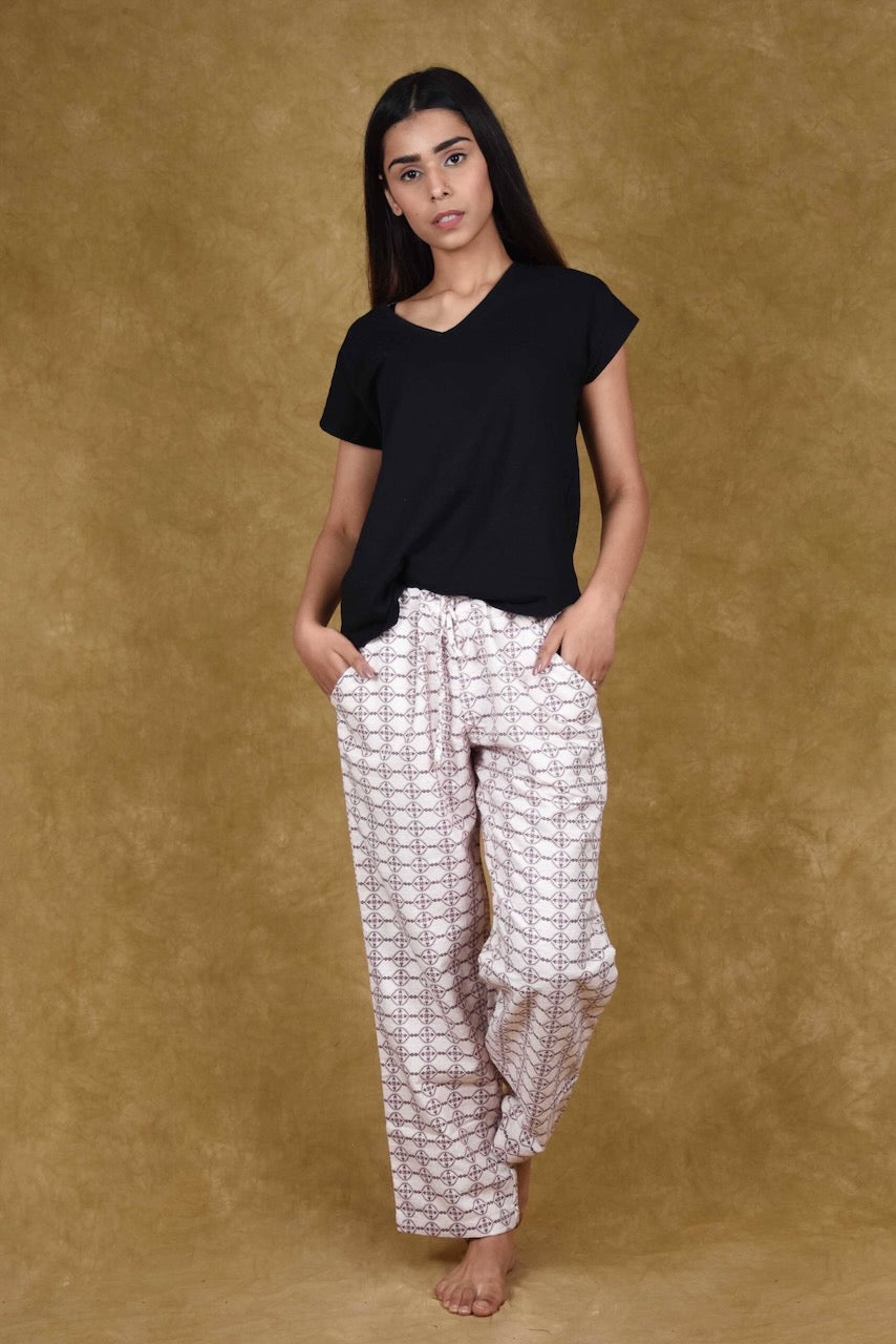 Rest easy and let your skin feel warm with joy in this soothing bottom crafted especially for tiring winters. The relaxed fit, fine fabric and sprightly print come together to add supreme comfort and style to days when you wish to let your hair down.