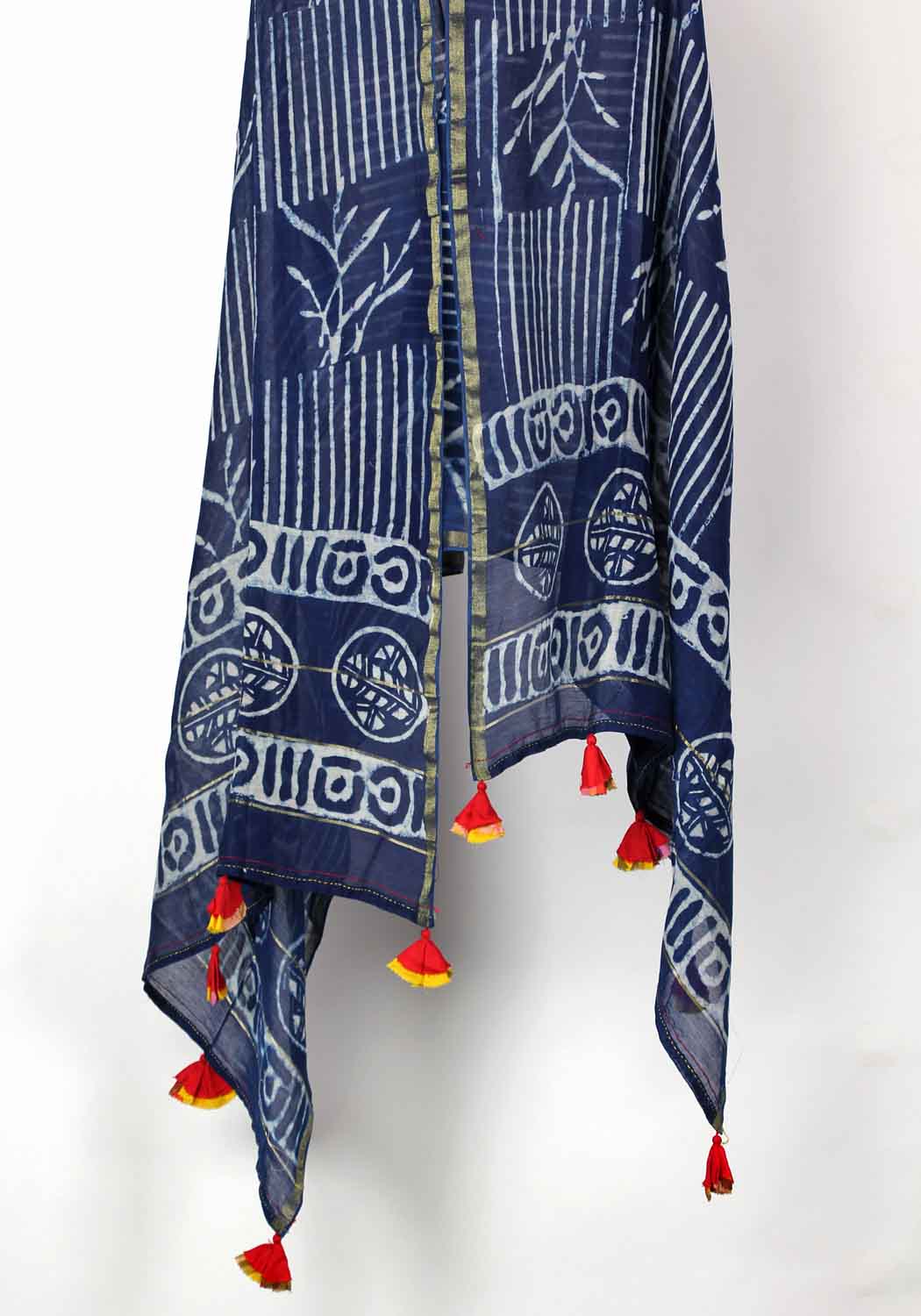 The dupatta will uplift your usual Kurti, to an epical one by giving it a contemporary and tranquil appearance. The contrastive tassels have been done with the assistance of underprivileged women, which not only gives this dupatta a magnificent look but also adds a human touch to it.