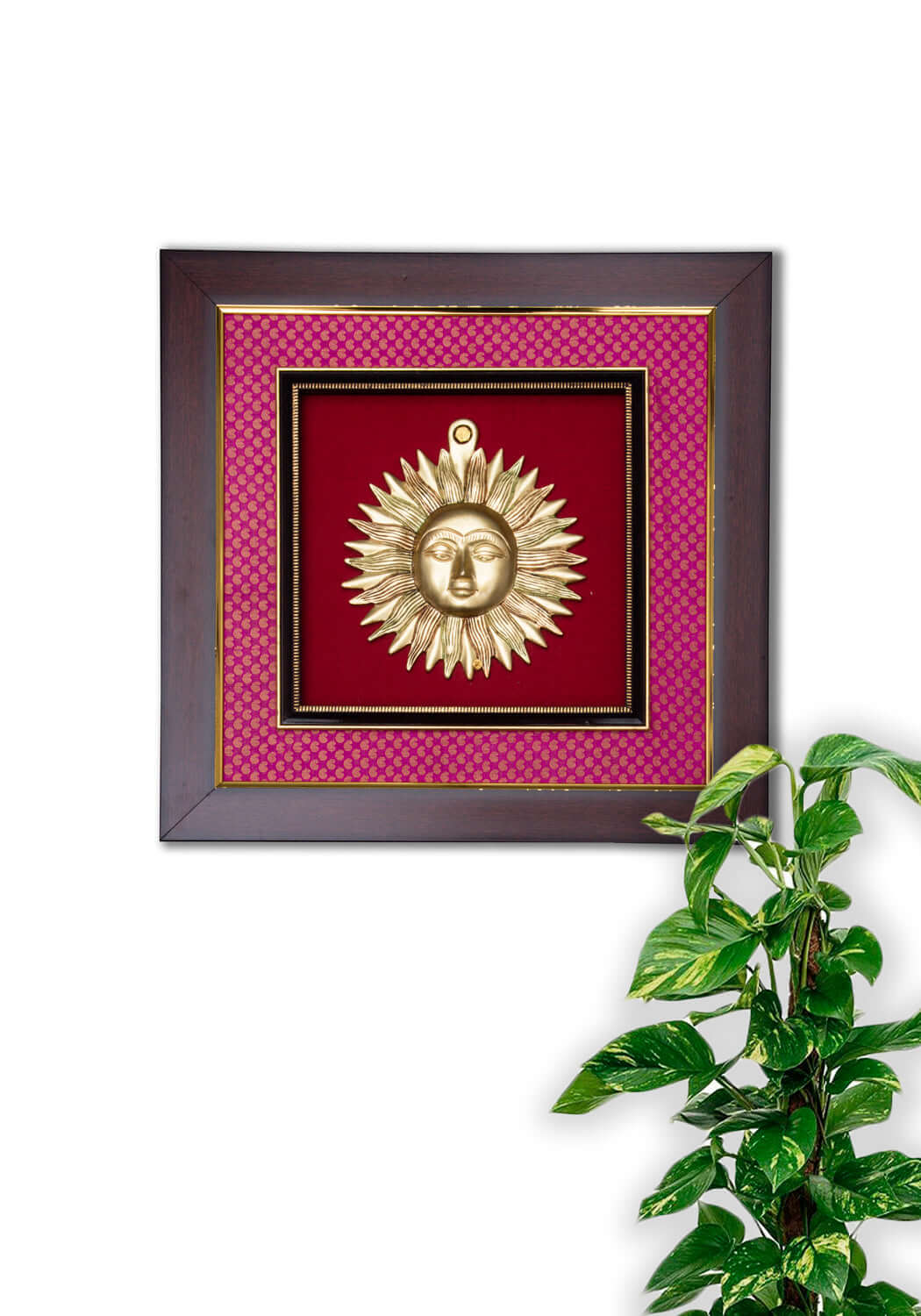 Order Contains: 1 Unit of Brass and Wood Surya wall hanging frame