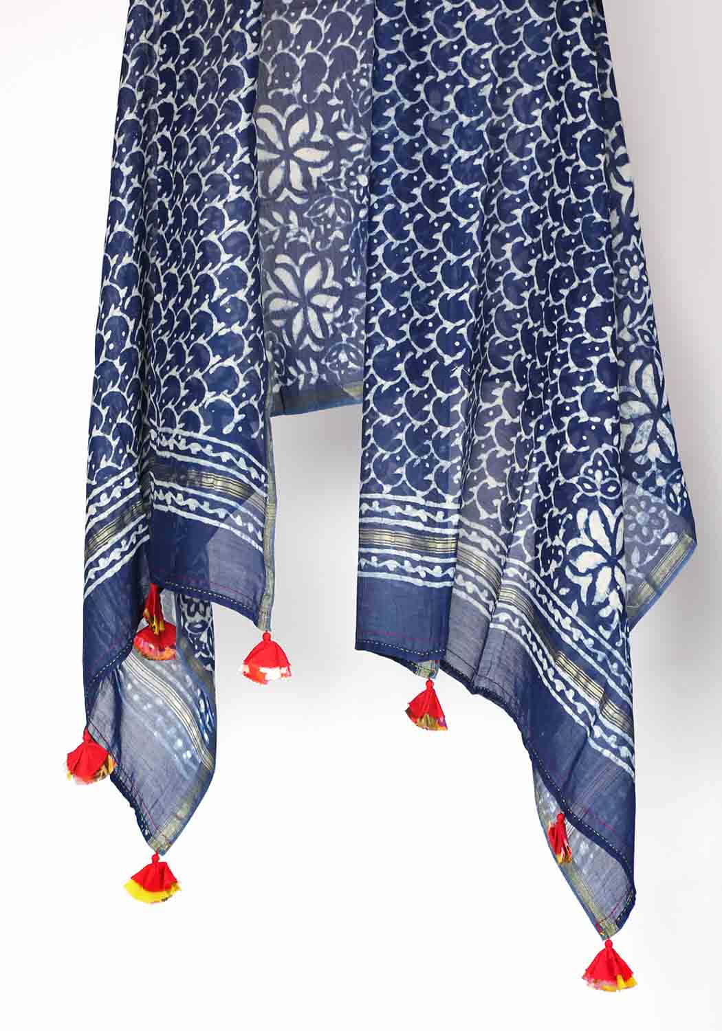 Ambiya brings you an appealing and enticing dupatta in Indigo colour, featuring a rare and distinctive print that offers a marvellous look. The dupatta will uplift your usual Kurti, to an epical one by giving it a contemporary and tranquil appearance.
